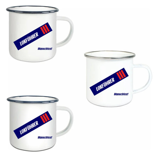 Emaille-Tasse - Lokführer in verschiedenen Farben und Kombinationen - Personalisiert