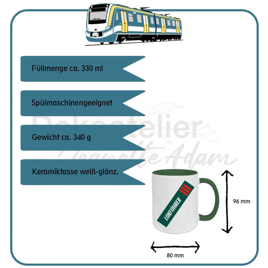 Keramik-Tasse - Lokführer dunkelgrün - Personalisiert