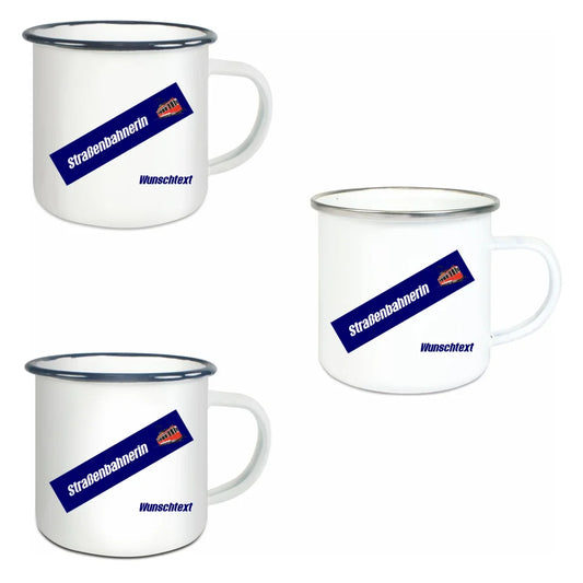 Emaille-Tasse - Straßenbahnerin in verschiedenen Farben und Kombinationen - Personalisiert
