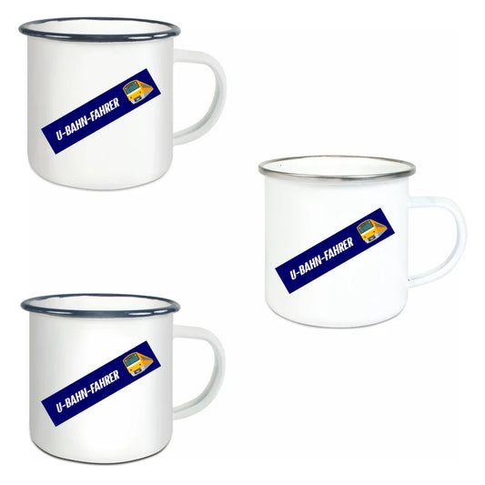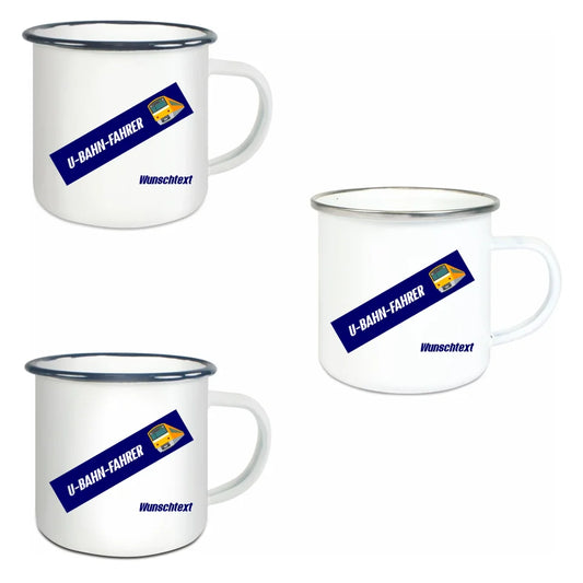 Emaille-Tasse - U-Bahn-Fahrer in verschiedenen Farben und Kombinationen - Personalisiert