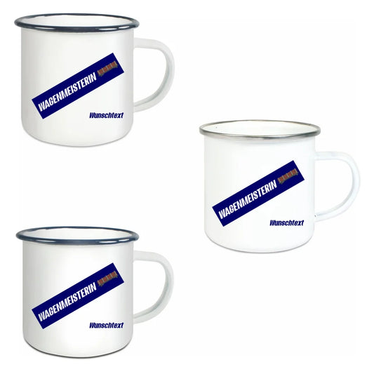 Emaille-Tasse - Wagenmeisterin in verschiedenen Farben und Kombinationen - Personalisiert